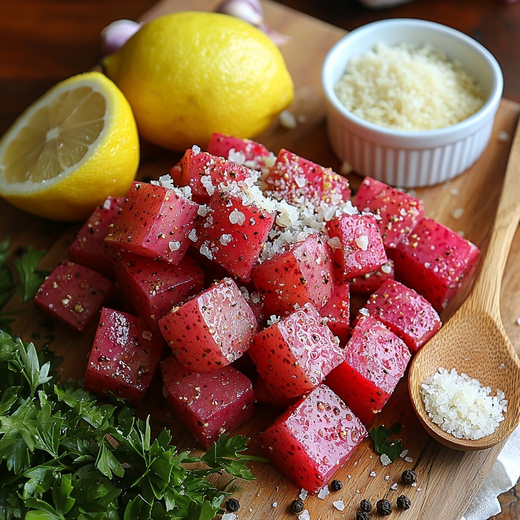 The magic of this Air Fryer Roasted Lemon Parmesan Potatoes Recipe lies in its straightforward, wholesome ingredients. Each component plays a vital role in building layers of texture and flavor, from the creamy Parmesan that crisps up beautifully to the fresh lemon notes that brighten every mouthful.