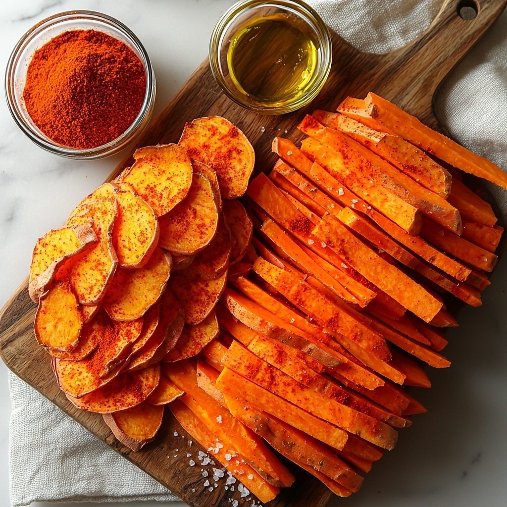 - Cut Sweet Potatoes: Slice the sweet potatoes into uniform 1/4-inch-wide strips for even cooking and crispiness.