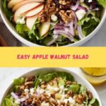 A refreshing Apple Salad featuring crisp red apple slices, mixed salad leaves, tangy dried cranberries, and crunchy candied walnuts tossed in a zesty cider vinegar and Dijon mustard dressing. This salad balances sweet, tart, and savory flavors, making it a perfect light meal or side dish.