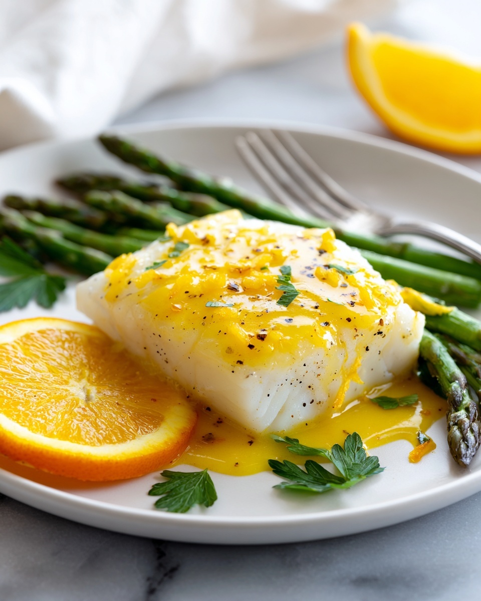 - Serve the Dish: Plate the baked cod fillets and generously drizzle the warm orange beurre blanc sauce over them.