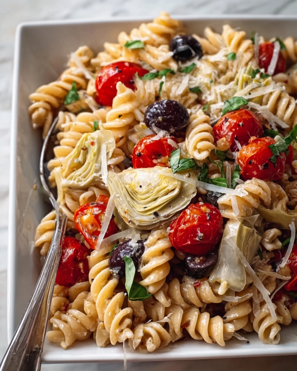Serve the Baked Mediterranean Pasta Recipe straight from the baking dish for a cozy family-style feel, or plate it individually and drizzle with balsamic glaze for a touch of elegance. For casual gatherings, consider placing it in mini ramekins for individual servings that wow your guests.