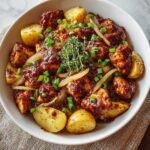 This BBQ Chicken Potato Skillet is a hearty and flavorful one-pan meal combining tender, seasoned chicken with crispy golden potatoes, smothered in tangy barbecue sauce and melted cheddar cheese. Garnished with fresh green onions and cilantro, it’s perfect for an easy weeknight dinner or casual get-together.