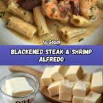 A rich and flavorful Blackened Steak and Shrimp Alfredo combining perfectly seasoned and seared steak and shrimp with creamy homemade Alfredo sauce served over tender penne pasta. This hearty dish offers a delightful blend of Cajun blackened spices and creamy Italian comfort, ideal for a satisfying dinner with a touch of elegance.