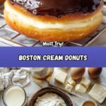 Classic Boston Cream Donuts featuring soft, fluffy fried dough filled with rich vanilla custard and topped with a smooth chocolate ganache. This recipe guides you through making the dough, creamy custard filling, and luscious ganache for an irresistible treat perfect for breakfast or dessert.