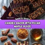 This Candied Bacon Recipe features crispy bacon coated with a sweet and spicy pecan, brown sugar, and maple syrup glaze. The combination of crunchy pecans, warm cayenne heat, and rich maple syrup creates an irresistible treat perfect for breakfast or as a savory snack.