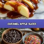 Serve your Caramel Apple Slices Recipe on a rustic wooden board with small bowls of extra toppings like crushed cookies, coconut flakes, or sea salt so everyone can customize their slices. You could even thread the caramel apple slices onto skewers for a fun, easy-to-eat snack at parties.