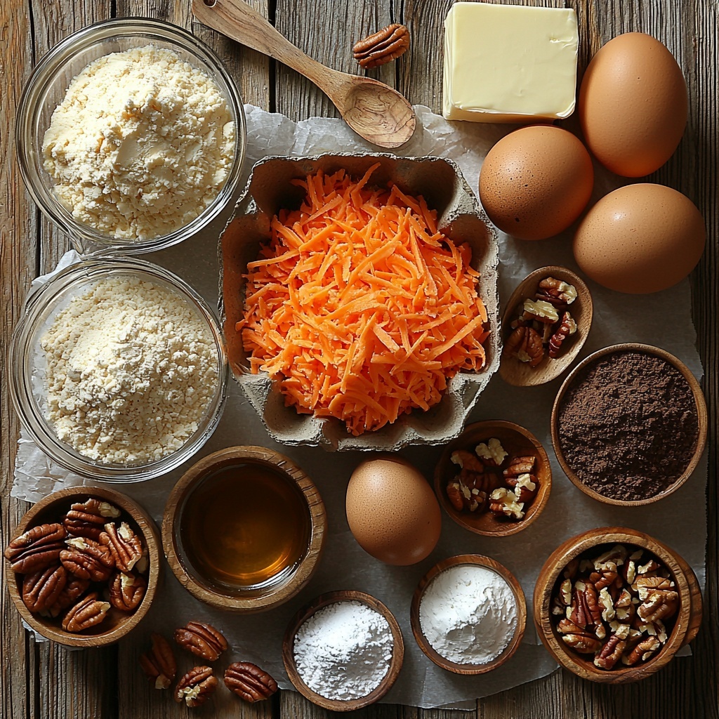 The beauty of this Carrot Cake & Cupcakes Recipe lies in its straightforward but essential ingredients list. Each component plays a vital role in creating the perfect texture, taste, and even color that makes this dessert so irresistible. From the moistness brought by oils and applesauce to the warm spices and crunchy pecans, these ingredients come together effortlessly.