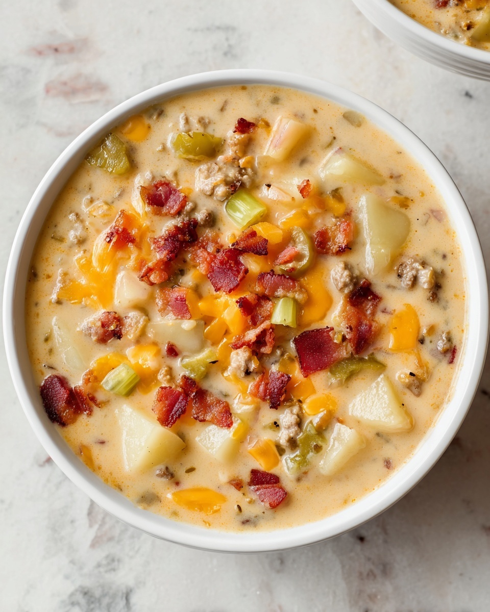 There is something undeniably satisfying about turning the flavors of a favorite cheeseburger into a warm, creamy, comforting soup. This Cheeseburger Soup Recipe captures all that goodness in every spoonful and is sure to become a staple in your recipe arsenal. Whether you’re feeding a crowd or just craving a cozy meal, try making this soup and watch it bring smiles to the table every time.