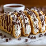 While these dessert tacos are sweet enough on their own, serving them alongside a scoop of vanilla ice cream or a small bowl of fresh fruit can balance the richness wonderfully. A hot cup of coffee or tea also pairs beautifully, perfect for ending any meal on a high note.