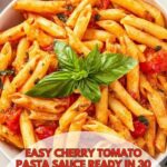 A vibrant and flavorful Cherry Tomato Pasta Sauce made with fresh cherry tomatoes, garlic, and Italian diced tomatoes, simmered to perfection and tossed with penne pasta for a comforting Italian-inspired meal. Garnished with fresh basil and optional Parmesan cheese for an added touch of richness.