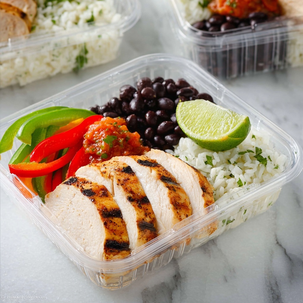 A flavorful and vibrant Chicken Fajita Bowl perfect for meal prep, featuring marinated grilled chicken breasts, sautéed bell peppers and onions, seasoned rice, black beans, and a tangy salsa garnish. This dish combines bold Mexican-inspired spices with fresh lime and cilantro, making it a nutritious and satisfying lunch or dinner option that can be prepared in advance and enjoyed throughout the week.