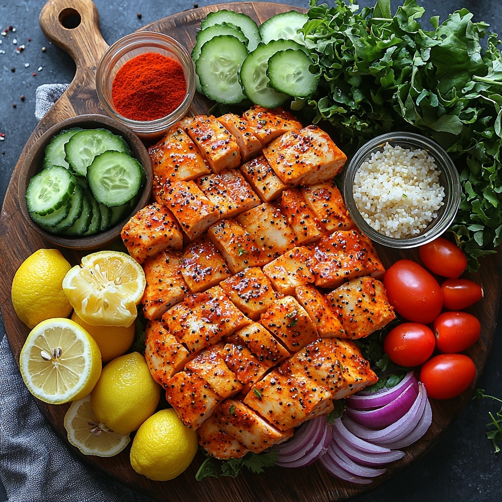 Start by placing your cooked rice, quinoa, or cauliflower rice as the base in each bowl. Layer on the sliced chicken, then add the fresh vegetables and mixed greens. Finish by drizzling generous amounts of tahini sauce over the top. Sprinkle chopped parsley or mint for a fresh, herbal lift. Each bite has a perfect mix of texture, flavor, and aroma—trust me, it’s an absolute joy!
