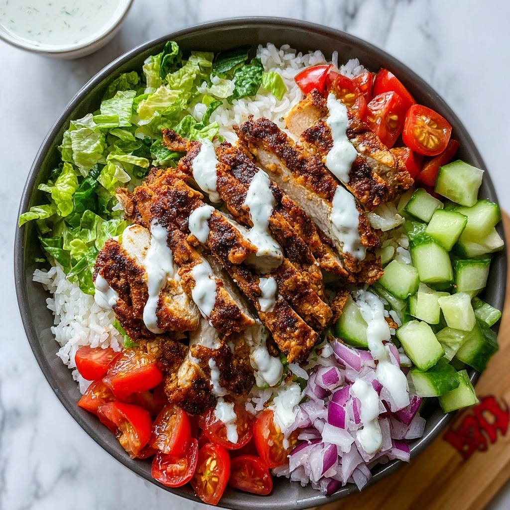 Start by placing your cooked rice, quinoa, or cauliflower rice as the base in each bowl. Layer on the sliced chicken, then add the fresh vegetables and mixed greens. Finish by drizzling generous amounts of tahini sauce over the top. Sprinkle chopped parsley or mint for a fresh, herbal lift. Each bite has a perfect mix of texture, flavor, and aroma—trust me, it’s an absolute joy!