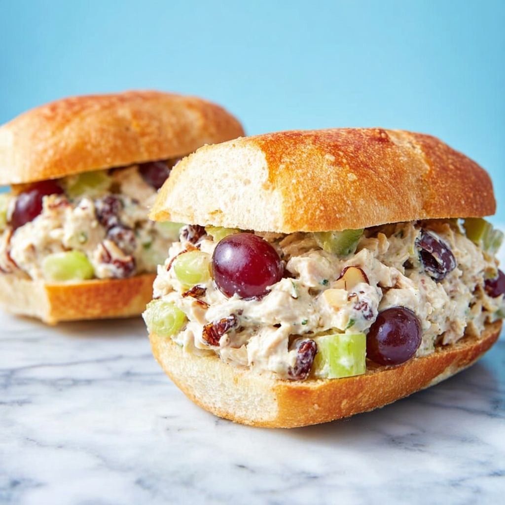 A classic and refreshing Chicken Waldorf Salad combining tender cooked chicken with crisp apples, celery, grapes, and a creamy lemon-mayo dressing, accented by crunchy pecans and sweet dried cranberries. Perfect as a light lunch or a side dish.