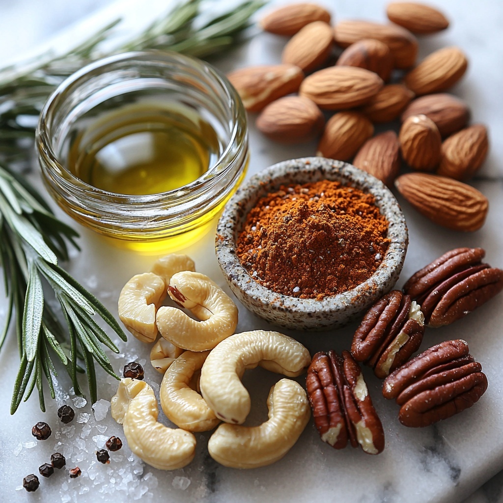 These Chipotle and Rosemary Spiced Nuts are a flavorful and crunchy snack featuring a vibrant blend of smoky chipotle, fresh rosemary, and warm spices. Perfect for serving at gatherings or enjoying anytime you want a spicy, herby nut mix with a sophisticated flair.