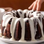 Place the bundt pan in the oven and bake for 40 to 45 minutes. You’ll know it’s done when a toothpick inserted into the center comes out clean. The cake’s aroma will fill your kitchen with irresistible notes of chocolate and vanilla, signaling that your masterpiece is nearly ready.