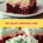 This festive Christmas Red Velvet Poke Cake combines a moist red velvet base with creamy vanilla pudding infused into its pores, topped with luscious green-tinted whipped cream and seasonal sprinkles for a visually stunning and delicious holiday dessert.