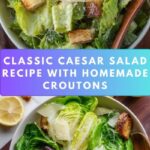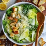 This classic Caesar Salad recipe features crisp romaine lettuce, homemade garlic croutons, and a creamy, tangy dressing made from Dijon mustard, Worcestershire sauce, fresh lemon juice, and Parmesan cheese. Perfect as a fresh side salad or a light meal, this Caesar Salad is easy to prepare and uses simple ingredients for a delicious and satisfying result.
