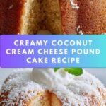 A rich and moist Coconut Cream Cheese Pound Cake featuring a creamy blend of butter and cream cheese, enhanced with shredded coconut and coconut milk for a tropical twist. Perfect for dessert or a special occasion treat.