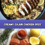 This Creamy Cajun Chicken Orzo recipe combines tender, seasoned chicken breasts with a rich and flavorful orzo pasta cooked in a creamy Parmesan sauce. The dish is infused with bold Cajun spices and garnished with fresh thyme and lemon wedges for a perfect balance of zest and creaminess, making it an ideal weeknight dinner that’s quick, comforting, and delicious.