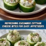 8. Storage: Cottage cheese filling can be prepared up to 1 day ahead and stored in an airtight container in the refrigerator. Slice and fill cucumbers 2–3 hours before serving to maintain crispness. Assembled bites can be refrigerated for up to 1 day but cucumbers may soften and release moisture over time.