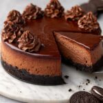 This rich and creamy Chocolate Cheesecake recipe features a decadent Oreo cookie crust and a luscious, smooth chocolate cream cheese filling. Perfectly baked and topped with a glossy chocolate ganache and cocoa powder dusting, this dessert is ideal for chocolate lovers seeking an indulgent treat for any occasion.