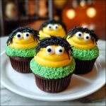 - Decorate the Cupcakes: Using a spoon or piping bag, spread the slime frosting generously over each cooled cupcake to resemble oozing slime. Place candy eyes on top of the frosting randomly to create a spooky and fun appearance.