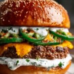 This Double-Decker Jalapeño Popper Smash Burger combines crispy smashed beef patties with a creamy, cheesy jalapeño popper filling and a zesty ranch drizzle. Perfectly toasted buns sandwich layers of melty cheddar, smoky bacon, and fresh jalapeños for a spicy, flavorful burger experience that comes together quickly in just 25 minutes.