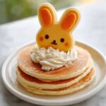 Turn your Easter Bunny Pancakes Recipe into a breakfast centerpiece by using a large platter lined with pastel-colored napkins or edible flowers. You can even arrange the pancakes so the bunny appears to be “hopping” across the plate. Kids will love helping decorate their own bunny pancakes, making the meal interactive and memorable.