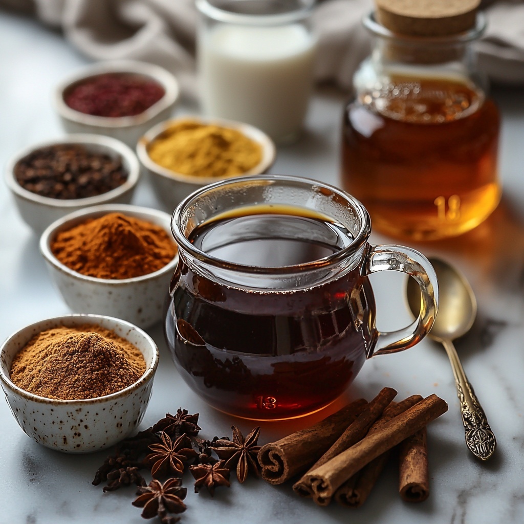 A warm and comforting Easy Chai Latte recipe combining black tea, aromatic spices, and creamy milk sweetened with maple syrup. Perfect for cozy mornings or relaxing afternoons.