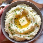- Garnish and serve: Garnish the mashed potatoes with fresh chopped chives or parsley, then serve warm as a delicious side dish.