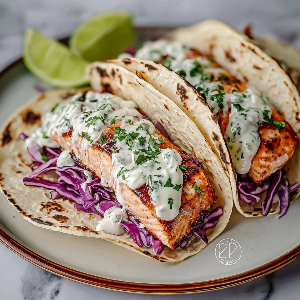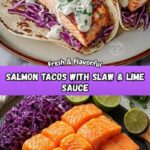 These Easy Salmon Tacos with Slaw and Creamy Lime Kick combine tender, seasoned salmon fillets with a vibrant cabbage slaw and a zesty lime-infused Greek yogurt crema. Perfect for a quick and healthy weeknight dinner, these tacos offer a delightful blend of fresh flavors and satisfying textures.