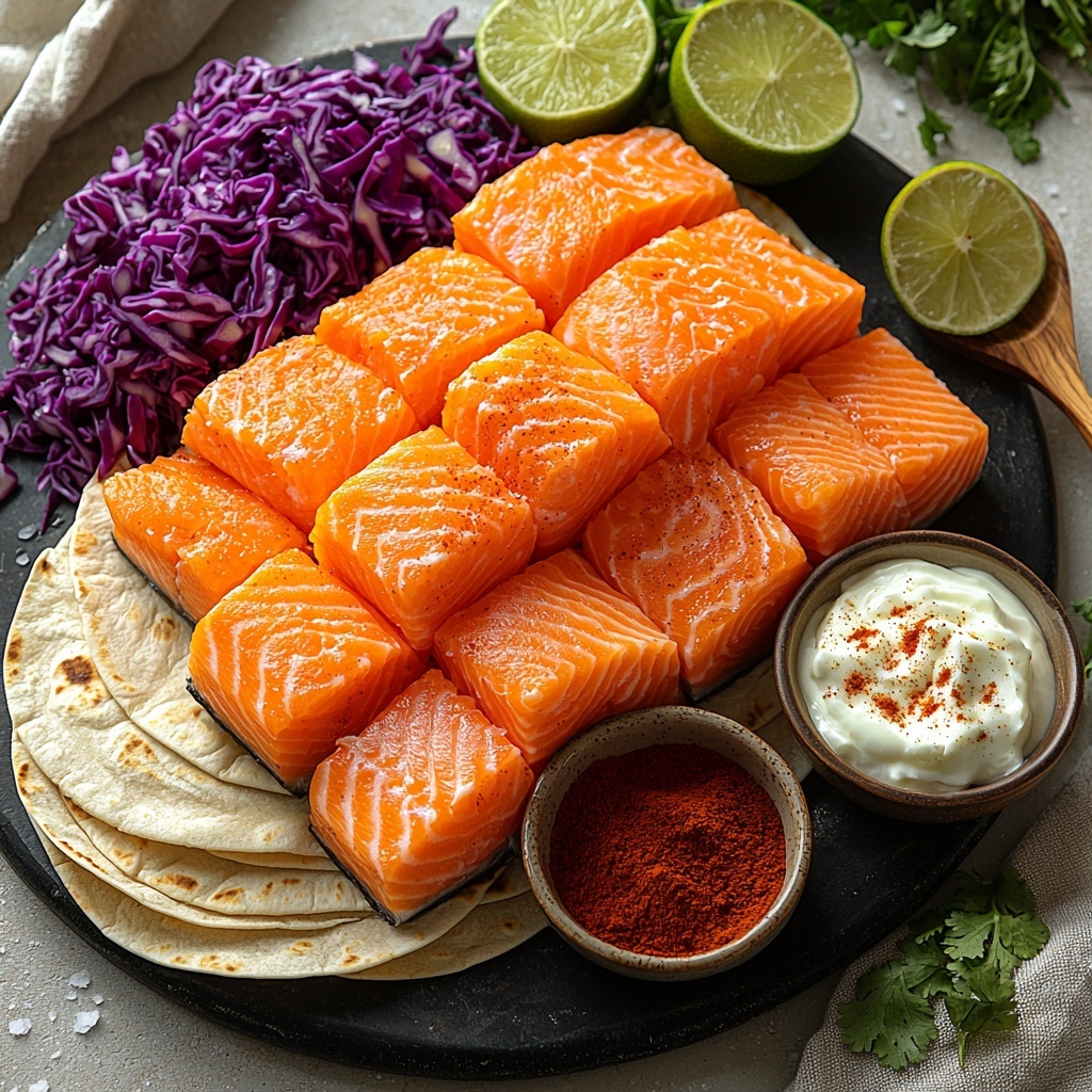 The beauty of this recipe lies in its simplicity. Each component is easy to find and brings a unique element to the dish, whether it’s the hearty salmon, refreshing cabbage, or that zingy lime sauce. Every ingredient plays a crucial role in layering flavor and creating a texture contrast that makes these tacos truly special.