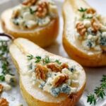 This Elegant Blue Cheese Stuffed Pears recipe offers a sophisticated blend of sweet and savory flavors. Ripe pears are halved and cored, then filled with a luscious mixture of crumbled blue cheese, toasted walnuts, and honey. Baked to tender perfection and finished with a drizzle of balsamic vinegar and extra honey, these pears make a delightful appetizer or dessert with a beautiful presentation accented by fresh thyme sprigs.