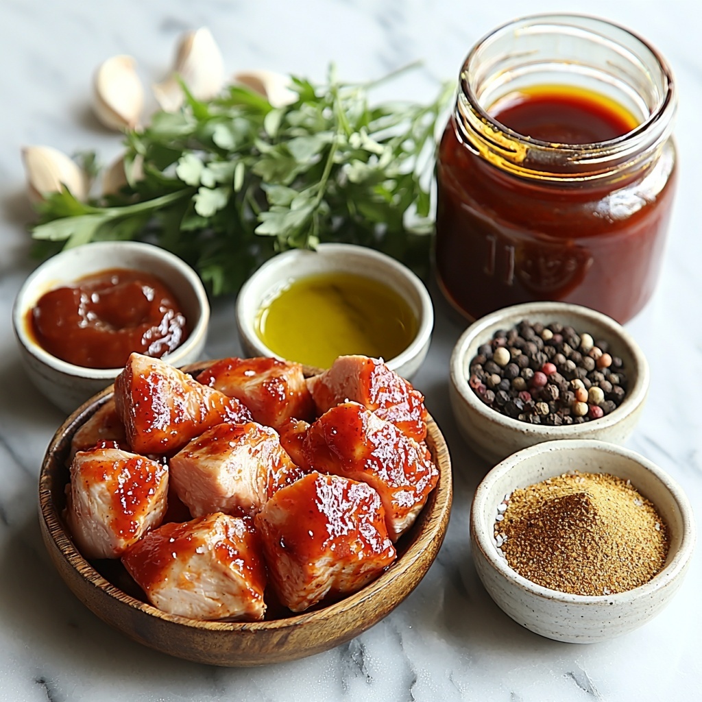 - 4 boneless, skinless chicken breasts (1.5 lbs): The lean protein base that soaks up the marinade and BBQ sauce beautifully.