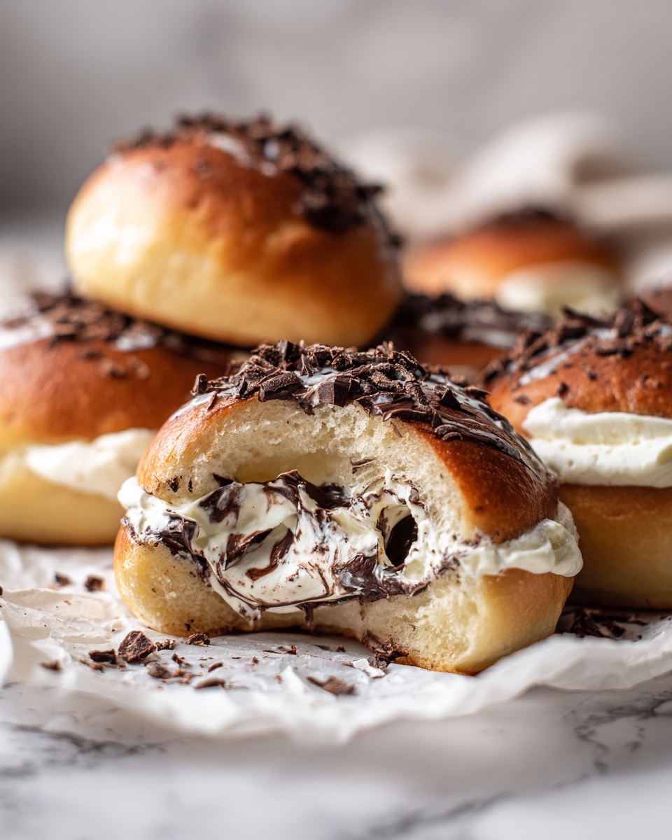 These Fluffy Chocolate Chip Milk Buns are soft, pillowy, and lightly sweetened bread rolls studded with rich dark chocolate chips. Made using the tangzhong method, which creates an ultra-moist and tender crumb, these buns are perfect for breakfast, snack, or dessert. They feature a glossy milk-brushed finish and a delicate balance of sweet and buttery flavors, ideal for chocolate lovers seeking a comforting homemade treat.