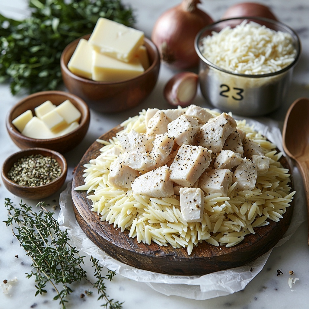 Gathering the right ingredients is the first step to nailing this French Onion Chicken Orzo Casserole Recipe. Each item plays a key role—whether it’s adding rich savoriness, creamy texture, or a burst of fresh flavor to balance everything out.