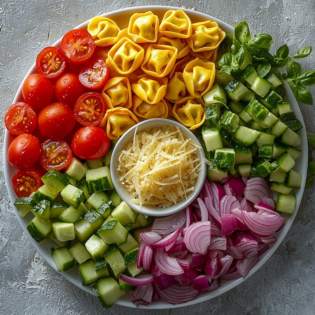 1. Cook the Tortellini: Bring a large pot of salted water to a boil. Add the cheese tortellini and cook according to package instructions, typically about 3-5 minutes until they float to the top and become tender. Drain and rinse under cold water to cool and stop cooking. Set aside.