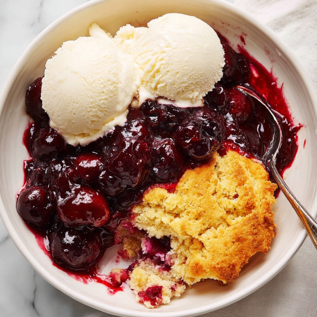 Fresh cherry cobbler deserves to be treated like the star it is, so adorn your serving with a scoop of creamy vanilla ice cream or a dollop of freshly whipped cream. A sprinkle of toasted almonds or a few fresh mint leaves can add a pop of texture and color, making every bite as delightful to look at as it is to eat.