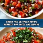 Take your Fresh Pico de Gallo Recipe up a notch by serving it in small, individual glasses as a mini appetizer or layering it with guacamole in a clear bowl for a festive dip duo. You can even spoon it over hummus for a fusion twist that adds excitement to snack time.
