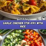 This Garlic Chicken Stir Fry with Rice is a quick, flavorful weeknight dinner combining tender chicken pieces sautéed with garlic and vegetables, served over fluffy white rice. The dish balances savory, aromatic garlic undertones with crisp veggies for a hearty and satisfying meal that’s easy to prepare and perfect for busy evenings.