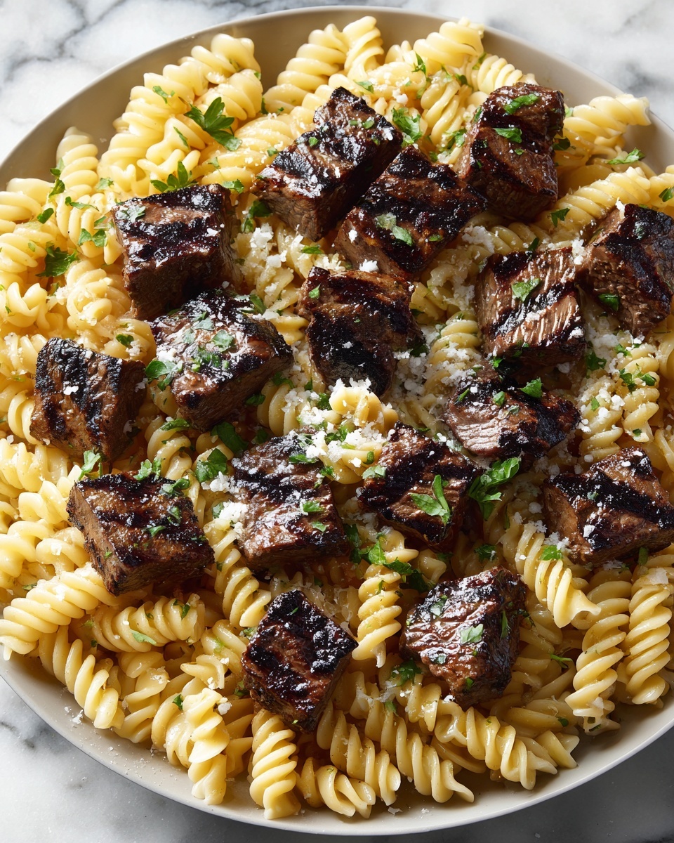 How to Make Garlic Parmesan Steak Bites with Rotini Pasta Recipe