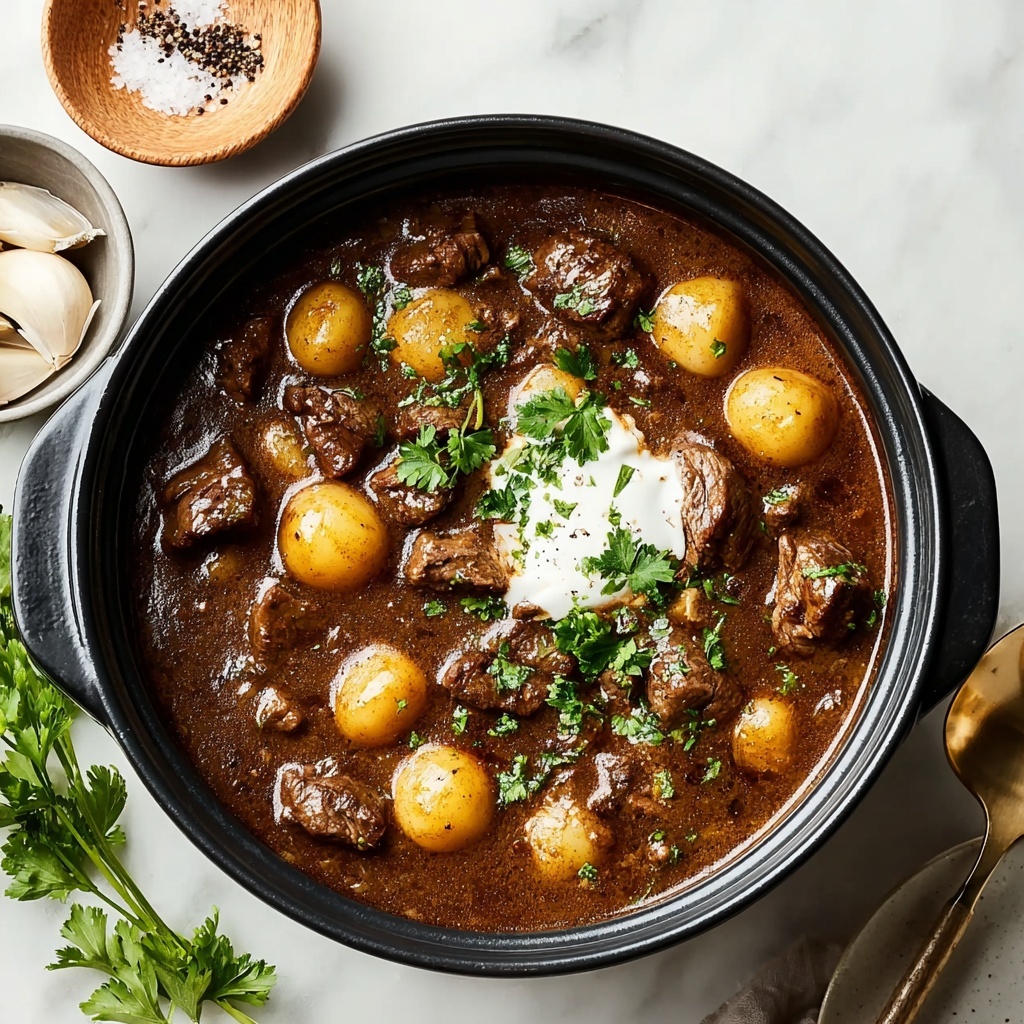 Reheat gently on the stovetop over low heat, stirring frequently to prevent curdling. Adding a splash of beef stock or cream can help revive the sauce’s creamy texture. Avoid microwaving at high power to keep the beef tender and the sauce smooth.