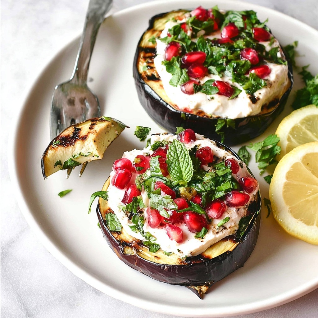 For a stunning presentation, layer the grilled eggplant slices on a large platter, drizzle sauce artistically, and sprinkle the fresh herbs and pomegranate seeds liberally. Alternatively, serve each slice individually topped with sauce and herbs as a fantastic appetizer or party dish. Adding a few edible flowers can elevate the visual appeal even more!