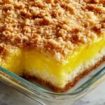 - Top with Remaining Crust Mixture: Sprinkle the leftover cake mix and butter mixture evenly over the top of the lemon pie layer, creating a crumbly topping.