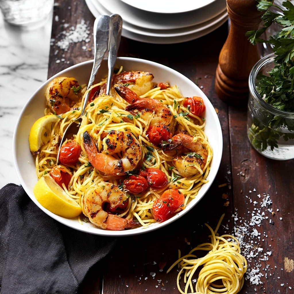 For a show-stopping presentation, plate the pasta in nests on warm plates, arrange shrimp beautifully on top, and sprinkle with colorful chili flakes and parsley. Serve in a large family-style bowl to let everyone share the joy, or for a modern twist, try layering the pasta and shrimp in clear glass bowls with lemon zest curls for a vibrant, Instagram-worthy meal.