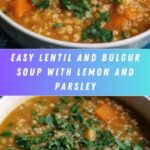 This comforting and nutritious Lentil and Bulgur Soup combines hearty red lentils and bulgur wheat with fresh lemon juice and parsley for a bright, flavorful finish. Perfect for a light lunch or dinner, it is a simple stovetop recipe packed with wholesome ingredients and warming spices.