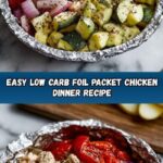 Since this Low-Carb Foil Packet Chicken and Vegetable Dinner Recipe is already brimming with veggies and protein, consider pairing it with a crisp mixed green salad or cauliflower rice for added texture. Roasted garlic mashed cauliflower would also complement the tangy, herb-infused flavors nicely without increasing carbs.