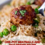 A comforting one-pan meal combining savory homemade or store-bought meatballs with tender, flavorful rice cooked in beef broth, enriched with garlic, peas, and fresh herbs. Perfect for an easy, hearty dinner served with a green salad or wilted spinach.