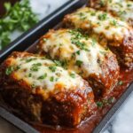 Spread the marinara sauce evenly over the top of the loaf, creating a tangy, vibrant glaze that locks in moisture and adds beautiful color. Bake in the preheated oven for about 50 minutes, or until the internal temperature reaches 165°F (74°C). The time and heat will carefully cook the chicken while melting the cheeses for that signature melt-in-your-mouth texture.